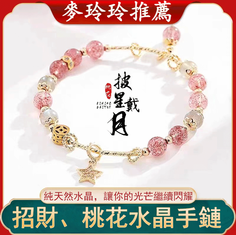 【麥玲玲推薦】桃花水晶手鏈——披星戴月,最新款招財桃花吉祥物